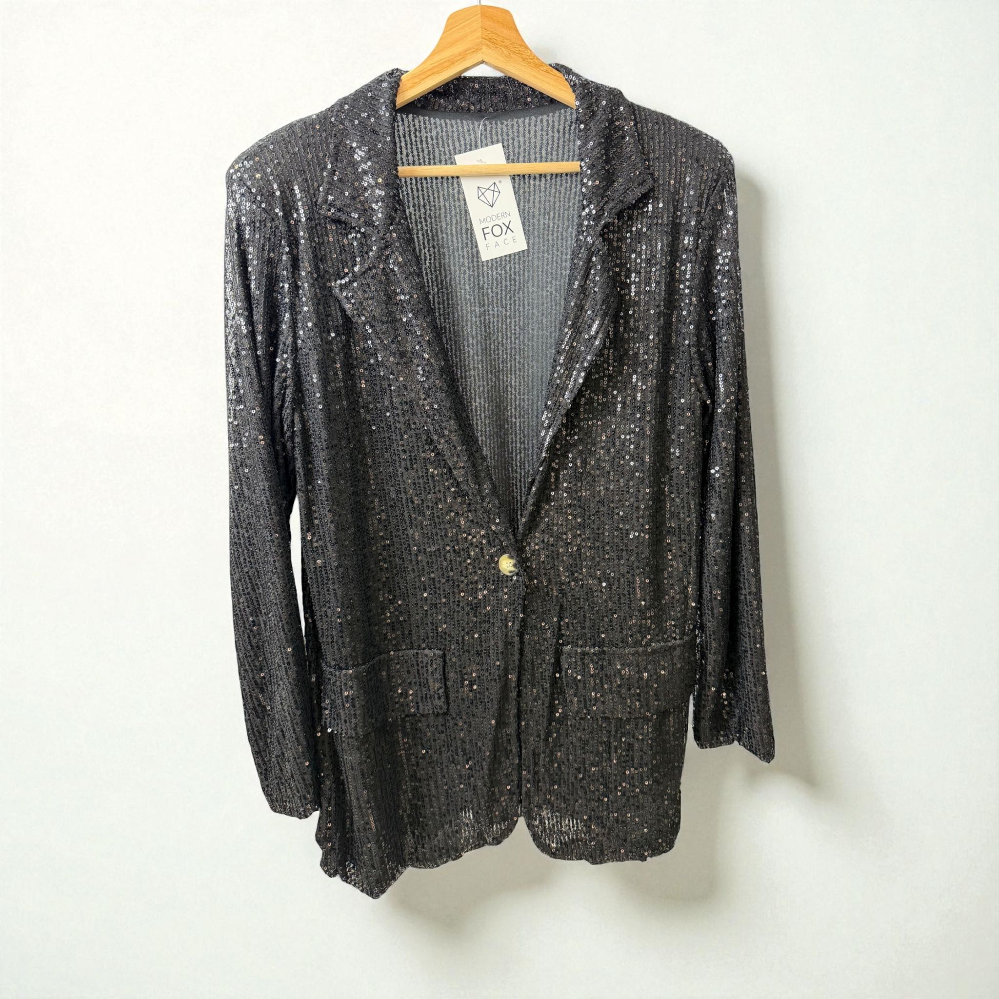 Blazer em lantejoula com forro fino, botão , efeito bolso pala