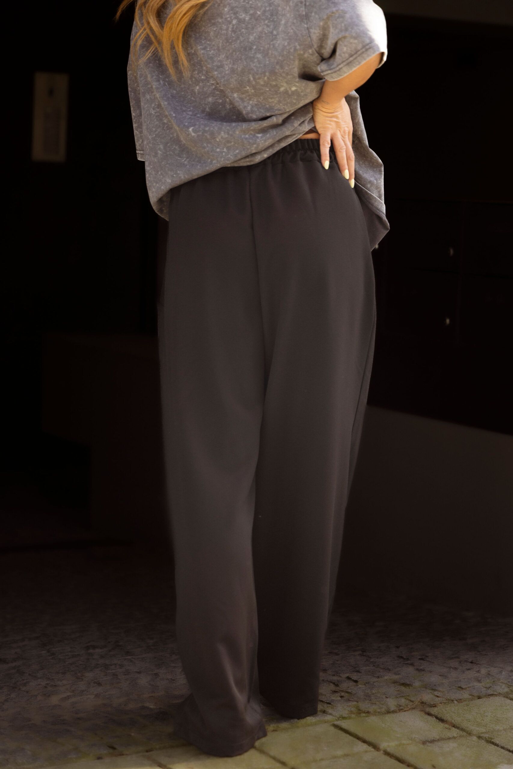 Calça pantalona , com prega , bolsos, cintura de elástico