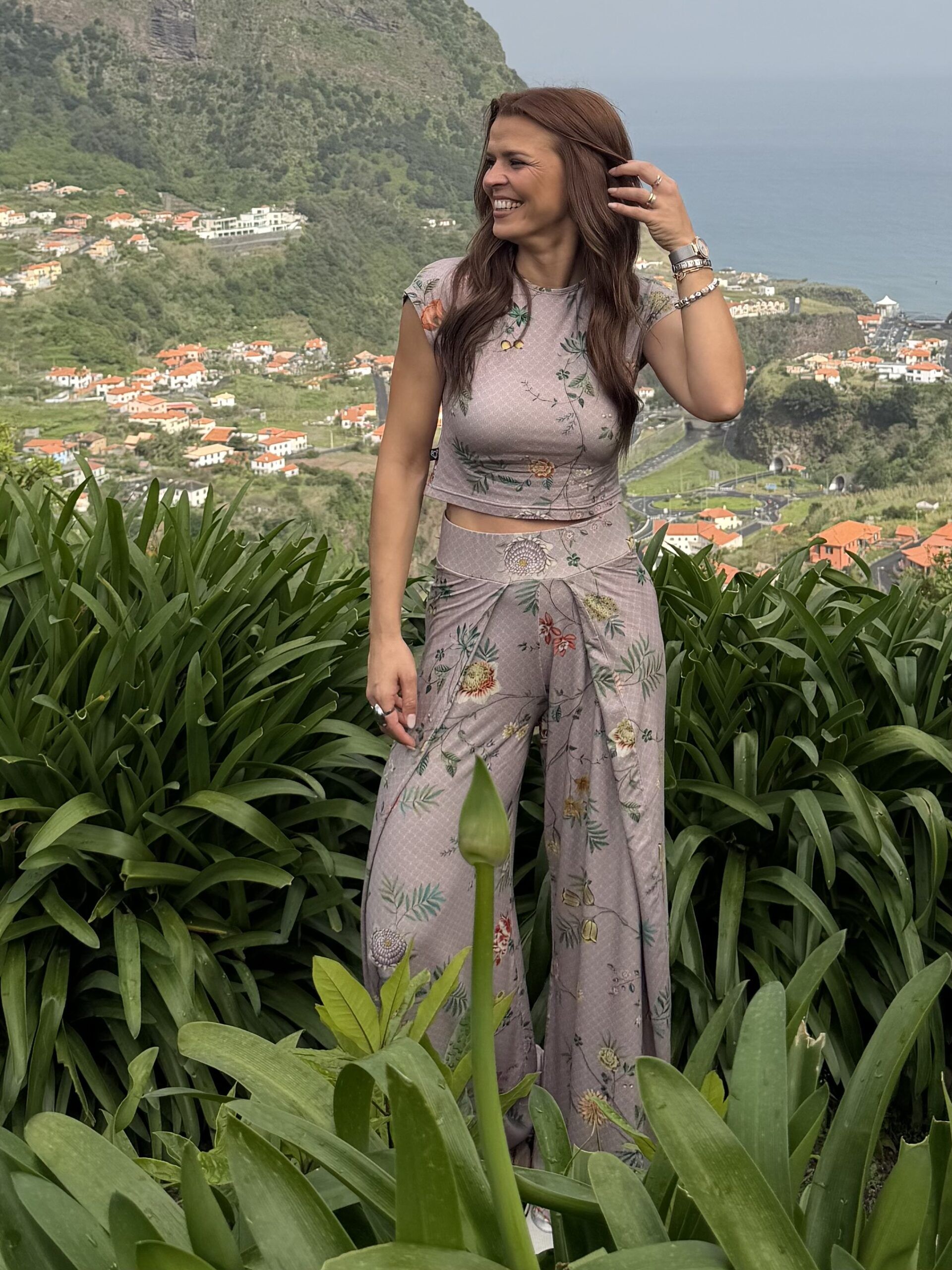 Conjunto exclusivo FOX , calça fluida com prega , t-shirt Crop