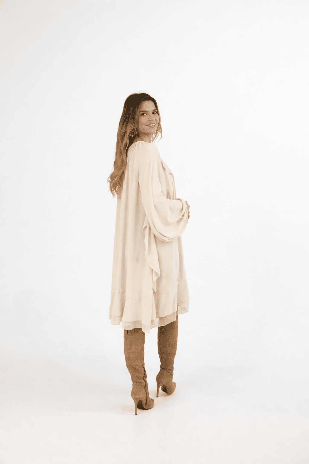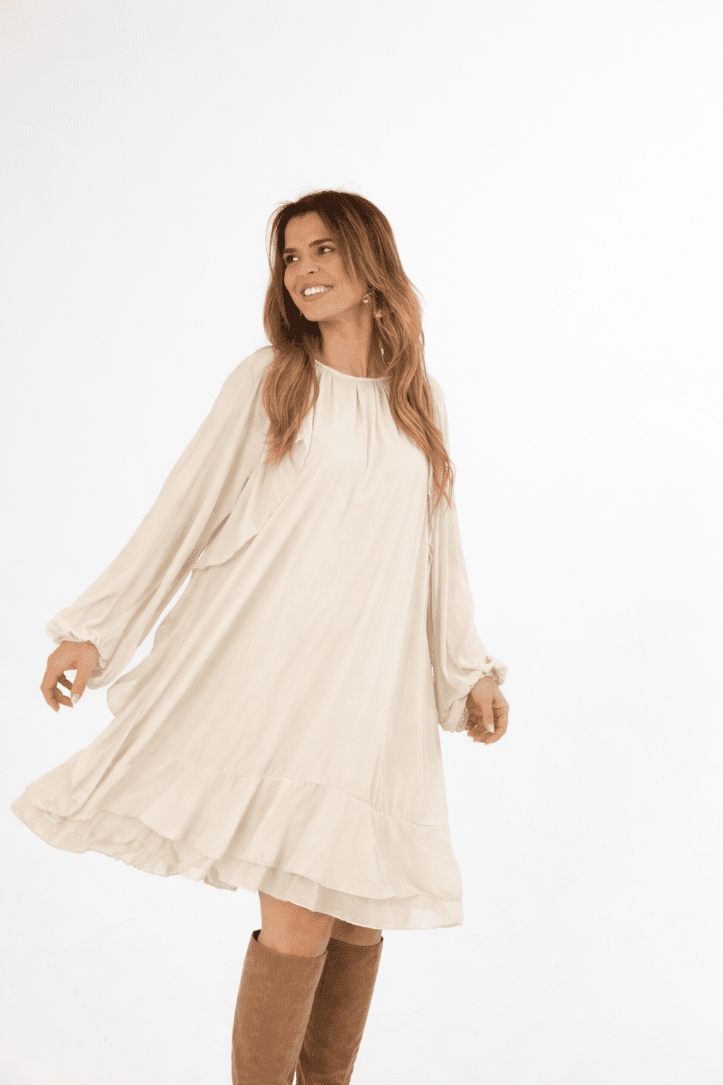 Vestido fluido com folhos